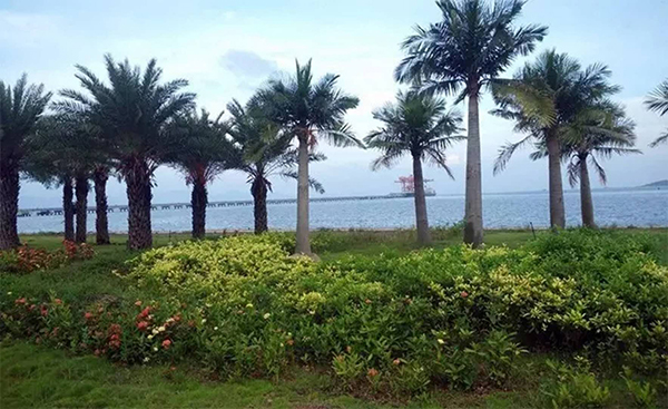 該項(xiàng)目總綠化面積67.7萬(wàn)平方米,其中石化區(qū)北側(cè)防護(hù)林帶西起沿海高速公路石化區(qū)出口,東至石化大道,北側(cè)為沿海高速公路,南側(cè)為北環(huán)路的狹長(zhǎng)地帶綠化隔離帶,自西向東全長(zhǎng)約為9188米,綠化總面積約為52.5萬(wàn)平方米。石化區(qū)東側(cè)防護(hù)林帶西接北側(cè)防護(hù)林帶,東至石化大道路口,分布于北環(huán)路兩側(cè),綠化總面積約為11.6萬(wàn)平方米。中海油倒班宿舍綠化面積約3.6萬(wàn)平方米。東、北側(cè)防護(hù)林帶工程設(shè)計(jì)共有苗木約75242株,地被植物約41408平方米。總投資約為1800萬(wàn)元,于2013年3月開(kāi)工,2014年12月竣工驗(yàn)收。