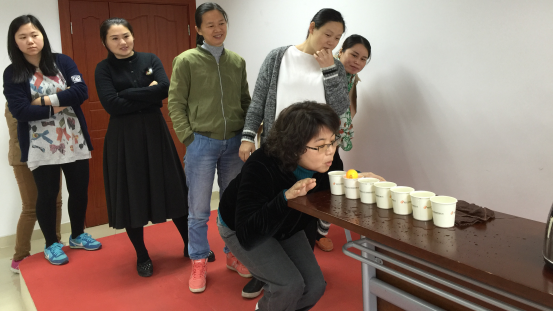 再看保齡球那里,剛開始大家低估了難度,開始玩的時候才發現要擊中目標并不容易,好幾位“女神”直接與目標“擦肩而過”,那是捶胸頓足啊!排隊最長的莫不是吹兵乓球那里,大家憋足一口氣小心翼翼地把兵乓球從第一個水杯吹到第七個水杯,由于只有一次機會,中途球掉落在水杯外面即作廢,需重新排隊,大家充分發揮不屈不撓的毅力,終于成功贏取小禮品。