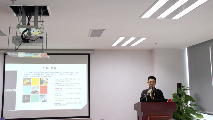 隨后,集團人力資源部/黨委辦副主任江東勝同志對剛剛修訂印發(fā)的《員工手冊》進行了宣講解讀,他從修訂說明、章節(jié)概述、要點講解等方面對該《員工手冊》作了全面細致的講解,并就公司核心價值觀、員工薪酬福利、紀律處分條例等與員工息息相關(guān)的內(nèi)容進行了重點解讀,進一步加強了廣大員工對新版《員工手冊》的全面了解。李仕國同志在主持過程中特別強調(diào)了集團新版《員工手冊》的正式印發(fā)實施對規(guī)范員工管理的重要意義,希望廣大員工進行認真深入地閱讀了解,真正將該《員工手冊》作為全體員工日常工作行為規(guī)范的基本遵循,展現(xiàn)出更加積極向上、作風(fēng)優(yōu)良的工作狀態(tài)和精神風(fēng)貌。