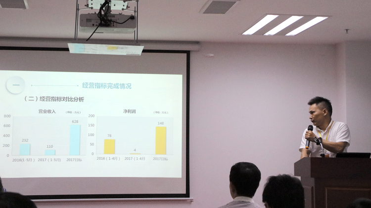 實業(yè)公司曾慶超總經(jīng)理在介紹實業(yè)公司上半年的經(jīng)營發(fā)展現(xiàn)狀