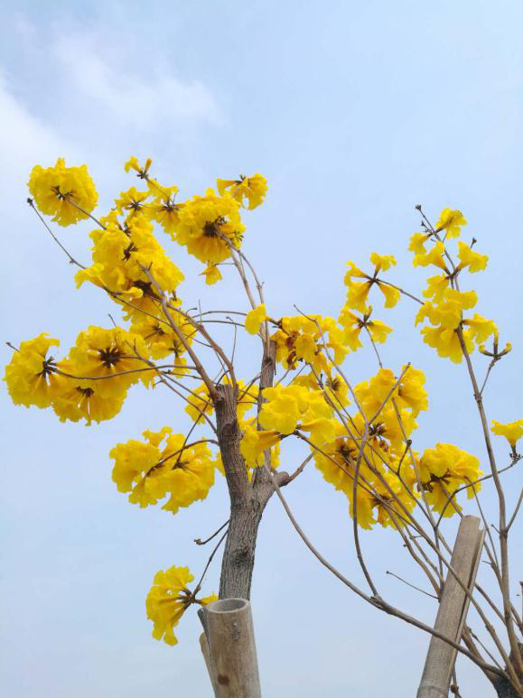 3月18日早上7點多就起來,天氣晴好風和日麗。按計劃9:00準時到達第一站指定集合處,接近沙澳收費站的沿途高速路一側,在早晨陽光的映襯下,滿眼絢麗的金黃色,樹枝不見一片綠葉!“忽如一夜春風來,千樹萬樹“黃花開”,滿樹金色的風鈴花就像搖錢樹似的,金燦燦的黃花為惠州的道路景觀增添了一抹亮麗的春色。