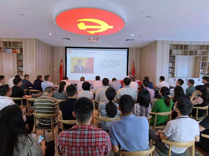 為深入推進石化發(fā)展集團黨史學習教育持續(xù)走深走實,以優(yōu)異成績慶祝中國共產(chǎn)黨成立100周年,6月28日下午,石化發(fā)展集團黨委書記、董事長張奮同志以“學黨史、悟思想、辦實事、開新局,深入學習中國共產(chǎn)黨黨史”為題,在集團黨群服務中心大廳為集團系統(tǒng)黨員干部講授專題黨課。在嚴格做好疫情防控措施情況下,集團全體黨員約60人參加了黨課學習。